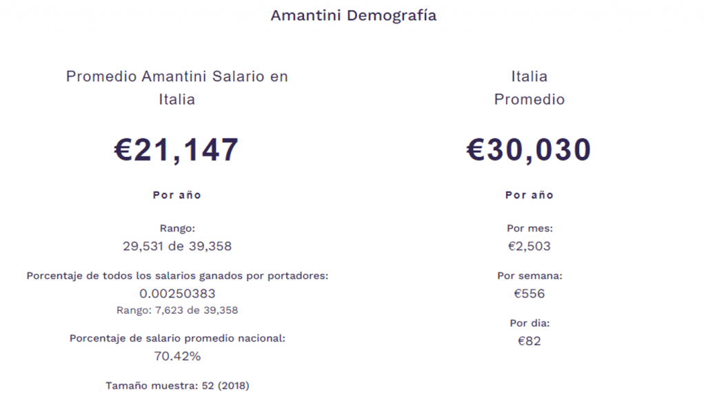 Cifras de Amantini en el mundo